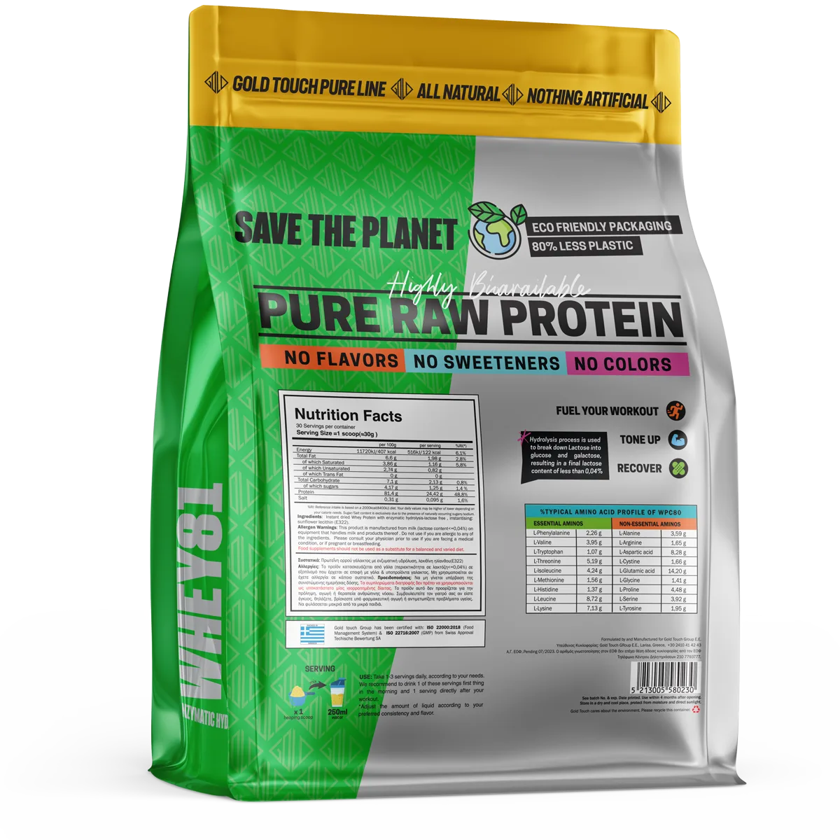 Ingredients (Natural): Whey Protein with Enzymatic Hydrolysis -lactose free, Emulsifier: Sunflower lecithin (E322).